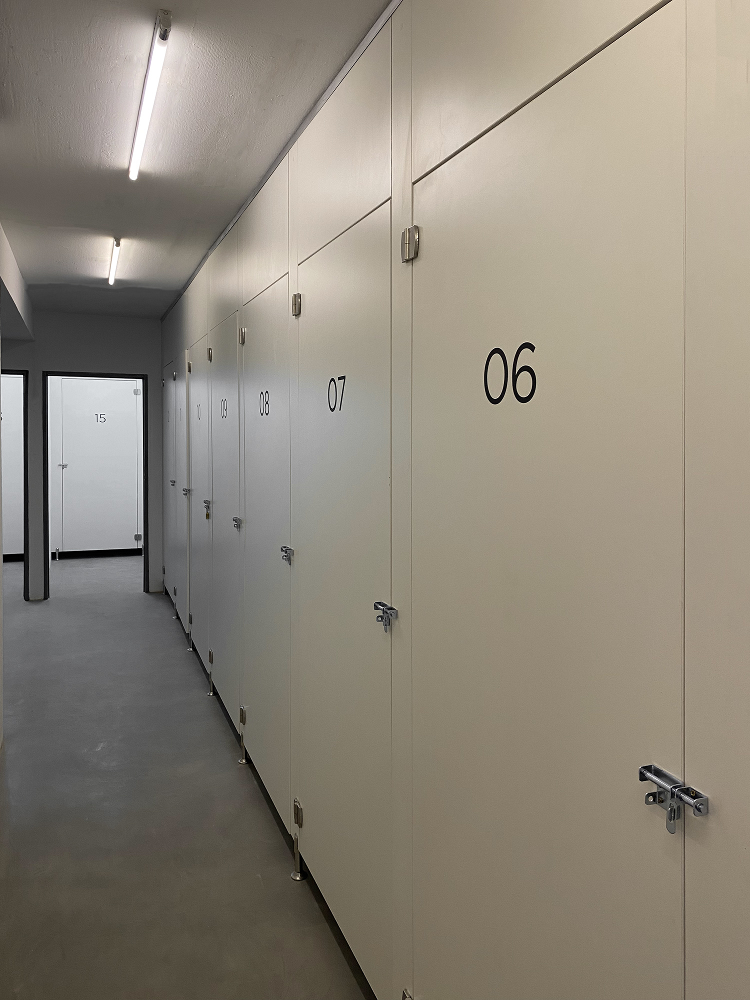 En el subsuelo del edificio, un sistema de bauleras transforma un área antes desaprovechada en un sector de guardado funcional y organizado.