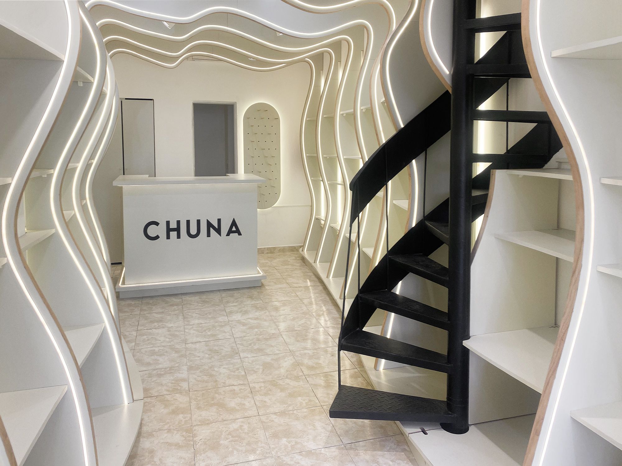Para esta nueva sucursal trabajamos en el montaje integral del espacio, desarrollando una intervención envolvente que transforma por completo el recorrido interior.